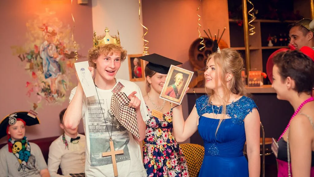 Квест на день рождения «Ночь в музее»: Когда великие цари и царицы прочитали книгу Карнеги и обсуждают, как завоевать друзей. Иван Грозный предлагает угрожать, Клеопатра — обниматься, а Елена Прекрасная — сделать необычный подарок.